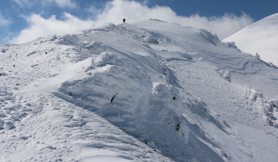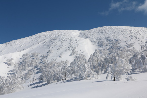| 2026年3月12日(木) 自宅6:15-アルパこまくさ7:30-出発7:45~ゲレンデ上部9:10~No26カーブミラー9:20~八合目避難小屋10:50~男女岳・山頂12:35-(ランチ)-下山13:00~八合目避難小屋13:45~ゲレンデ上部14:30~アルパこまくさ着15:20 例年この時期に一度は訪れている秋田駒ヶ岳・男女岳、アルパこまくさルートです。数日前から天気予報と睨めっこしながら12日(木)が終日の晴れマークである事から今日しか無いという事で決行しました。登山におけるもう一つの指標である”てんくら”では、午前中はB&Cマークという事で、天気は良いが風が強いのかなぁ~と予想されます。 アルパこまくさの駐車場に到着すると、5台程の車が駐車していますが平日という事で訪れる人もそれ程多く無いようです。 早速、登山靴に履き替えるなど準備を整えゲレンデに進むと、何かの作業道を確保する為なのか重機で除雪された道路が現れました。除雪された道を途中まで進み、1m程の段差を乗り越えてゲレンデに登りスノーシューを装着しました。 此処からはアルパこまくさルートの難関、旧スキー場ゲレンデ登りのスタートです。出発から1時間30分弱でゲレンデ上部に到着、そこには木々の枝に真綿の様な雪をまとった風景が出迎えてくれました。 |