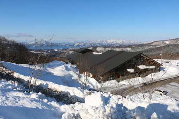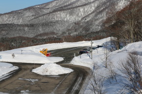 | アルパこまくさ全景・・・奧には田沢湖が望めます | 駐車場は閑散としてます↑/ゲレンデの状態↓ | |