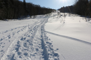 | 登山口となる仙岩トンネルの入口付近の様子! | 登り口付近↑/アイゼンのみ、ツボ足もあり↓ | |