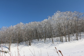 | 乳頭山が見えます↑/青空に励まされて↓ | スキー場を登りきり、何とかうさぎ平に到着しました! | |