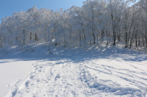 | 営業開始前の網張スキー場・・・・リフトも動いていません | 鎌倉森↑/ゲレンデの左端を登ります↓ | |
