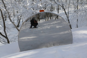 | 青空に映える木々の着雪? | No26カーブミラー↑/新雪が綺麗↓ | |