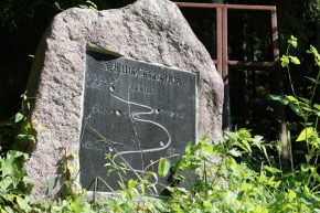ベニバナイチヤクソウ↑/ワサ小屋跡↓ | ワサ小屋跡に建つヤマンバ様の石像!・・・左端です | |