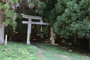 室根神社の参道が登山道に | 参道は杉の大木で日除けになります | 室根神社の鳥居 |