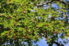 | 山頂への林道分岐 | 赤い実がついています | 山頂に到着、500mに満たないけどきつかった! |