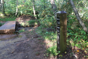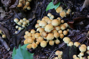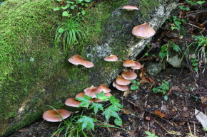| 登山口から1.7km、丸森川 | 丸森川の橋を渡る | 立派なキノコですが・・・ツキヨタケ? |