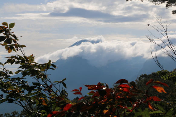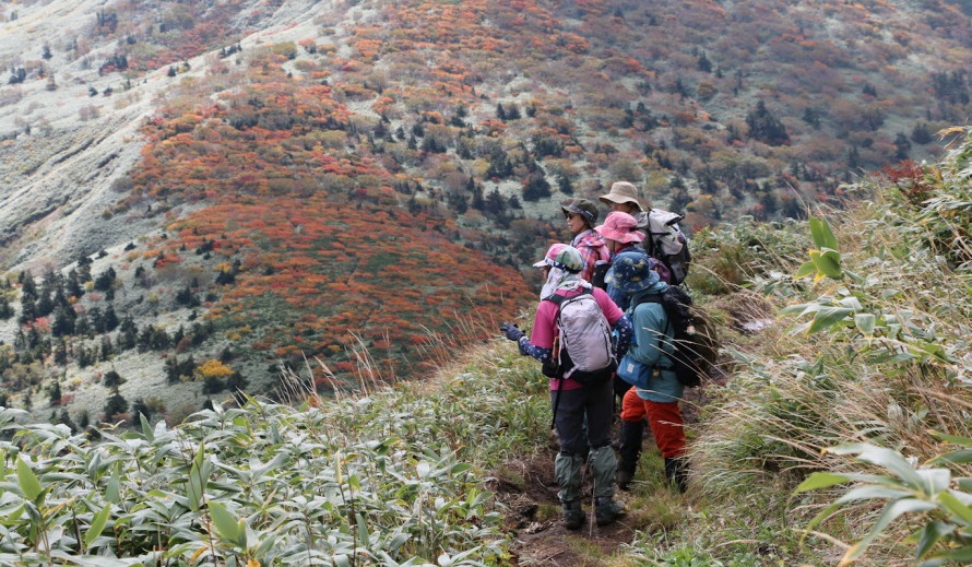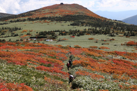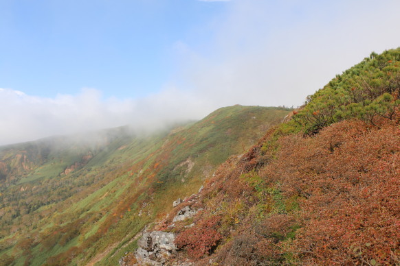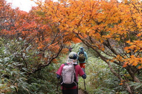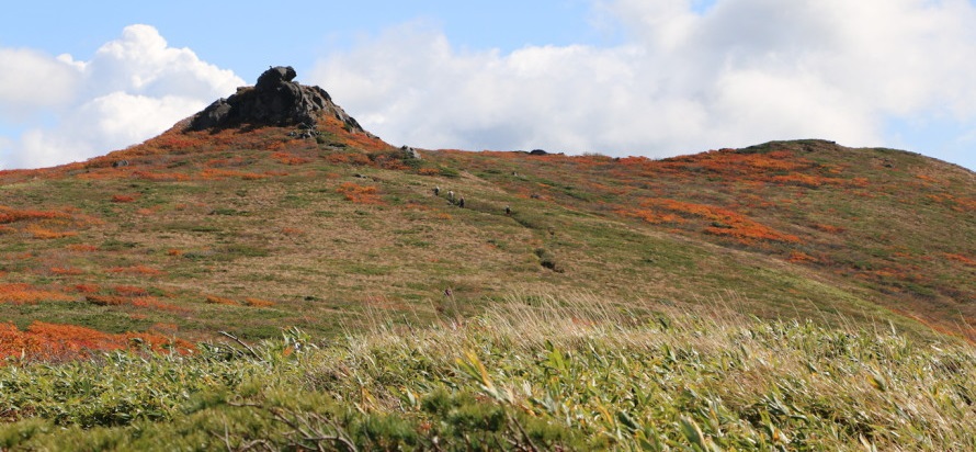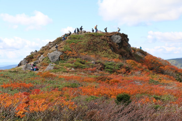 | 赤く色付いた三ツ石山が近づいてきました! | ||
