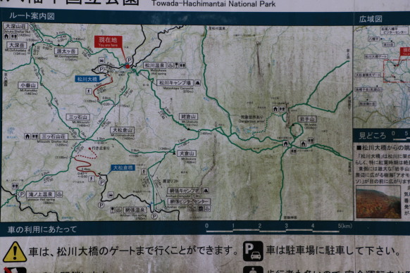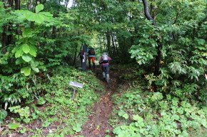 | 現在地の登山口から、源太ヶ岳~大深岳~小畚山~三ツ石山と周回し、松川登山口へ下山の予定 | 登山口を出発↑/衣類調整中です↓ | |