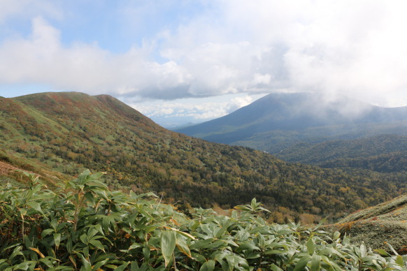 | 紅葉のトンネル↑/しばし写真タイム↓ | 源太ヶ岳と岩手山 | |