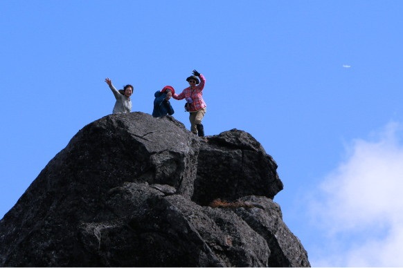 | 大きな岩↑/カエル岩・・?↓ | 薬師岳・山頂にて集合写真 | |